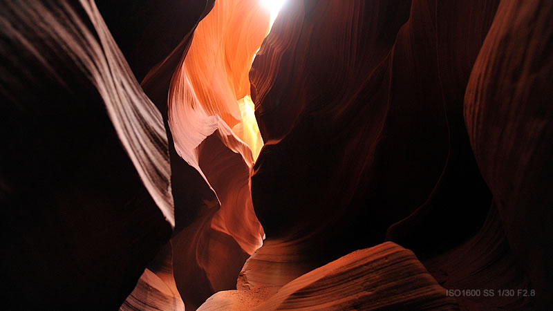 やはり写真を撮ろうと思えば心準備としての情報収集やらカメラの手配と失敗がないようにやっておきたい。で、私が行ったのはアッパーアンテロープキャニオンでした。ネットでキーワード“アンテロープキャニオン”&“写真”&“カメラ”で検索するとだいたい感じはつかめますんでどう撮るか考えます。ただ、ネット情報は個々の撮影コンディションもお持ちのカメラも同一ではないんで、最後は集めた情報を基に自分なりに決めてほしい。手持ちのアンテロープキャニオン写真撮りに留意すべきはつぎの3つくらいかな。